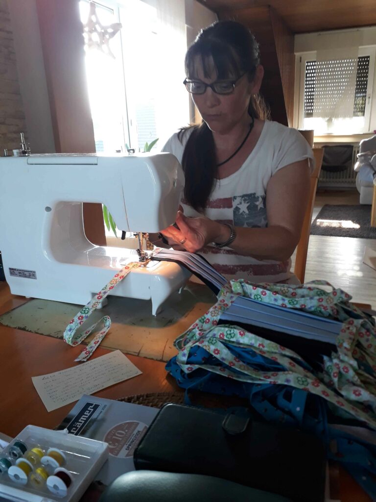 So stellte der WVER den 17 Näherinnen und Nähern das benötigte Material, wie Baumwollstoff, Schrägband und Garn sowie die passende Nähanleitung zur Verfügung. Alle Berufsgruppen, verteilt im ganzen Verbandsgebiet, machten mit: vom betrieblichen Mitarbeiter über den Kläranlagen-Meister, die Ingenieure oder Reinigungskräfte bis hin zu Kollegen aus dem Personalrat. Auch Familienangehörige beteiligten sich am Nähprojekt.