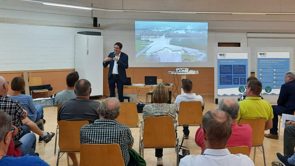Der Masterplan „Hochwasserresiliente Stadt- und Gebietsentwicklung für das Einzugsgebiet von Inde und Vicht” ist allerdings nur so gut, wie er auch von den Betroffenen verstanden und unterstützt wird. Denn effizienter Hochwasserschutz ist eine Aufgabe, die nur gemeinsam bewältigt werden kann. Umso wichtiger, so Martin Kaleß im Gespräch, ist dem WVER, die Öffentlichkeit breit zu informieren, die bisher geplanten Maßnahmen zu erläutern und alle Beteiligten zur Diskussion und zum Ideenaustausch einzuladen. Dazu organisierte der Wasserverband verschiedene Informationsveranstaltungen in den betroffenen Kommunen. An Info-Ständen konnten sich die Anwohnerinnen und Anwohner direkt bei den Expertinnen und Experten des Verbands informieren oder waren zu Vorträgen eingeladen, in denen der Masterplan im Detail vor- und auch zur Diskussion gestellt wurde. Martin Kaleß dazu: „Der Masterplan ist nicht in Stein gemeißelt. Wir verstehen ihn als einen dynamischen Prozess, in den auch die Erfahrungen und Anregungen der Bürgerinnen und Bürger mit einfließen und somit zur Weiterentwicklung beitragen.“ Der WVER konnte aus diesen Veranstaltungen wichtige Hinweise mitnehmen und dabei gleichzeitig die Besucherinnen und Besucher auch für den notwendigen Hochwasserschutz sensibilisieren. An Ideen und jetzt anstehenden To-Dos besteht kein Mangel. Zumal der nächste Masterplan zum Fluss Wurm bereits in Vorbereitung ist.
