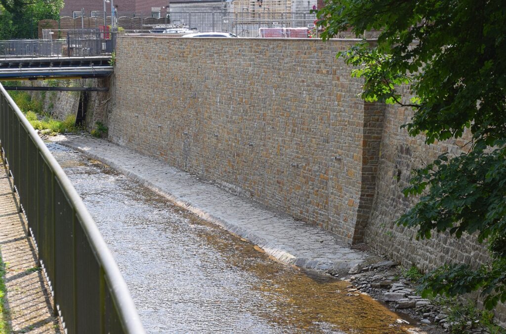 Dank der Verblendung mit Steinen bietet die neue Mauer auch optisch einen Mehrwert: Das dürfte auch die Bewohnerinnen und Bewohner des Seniorenzentrums auf der anderen Flussseite freuen, denn von ihren Balkonen und Sitzterrassen haben sie den direkten Blick auf die Vicht.