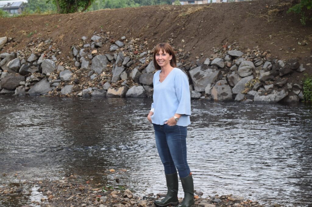 Die Befestigung mit Findlingen war durchaus eine Herausforderung: „Es gab keine direkte Zuwegung zur Abbruchstelle“, berichtet Tanja Moll, „deswegen mussten die schweren Steine über eine Rampe direkt neben der Brücke zum Fluss verbracht werden. Dort verlud sie ein Bagger nach und nach in ein geländegängiges Fahrzeug, das sie zum Baufeld transportierte. Ein weiterer Bagger entnahm sie dann aus diesem ‚Dumper‘ und positionierte sie geschickt in die neu zu errichtende Uferböschung.“