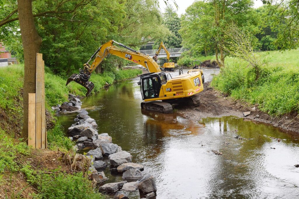 Und: Nicht alles, was auf den ersten Blick wie ein Schaden aussieht, wird auch als solcher bewertet. Ein sehr gutes Beispiel dafür findet sich im Bereich der Kläranlage Stolberg-Steinfurt, wo die Inde nach Eschweiler-Pumpe fließt. Dort hat sie durch das Hochwasser ihren Lauf in eine Grünfläche hinein verlagert und hohe Abbruchkanten geschaffen. Dies ist ein klassisches Beispiel von natürlicher, eigendynamischer Gewässerentwicklung in einem Bereich, wo dies ohne eine Gefährdung von Menschen und Gebäuden möglich ist. Durch diese „Selbstrenaturierung“ des Flusses und die Abschwemmung von Erdreich sind neue Rückhalteräume geschaffen worden. Uferbereiche können in Zukunft bei hoher Wasserführung geflutet werden und tragen damit zur Entschärfung von Hochwasserwellen bei. Außerdem bieten die Abbruchkanten willkommene Lebensräume etwa für Eisvögel oder auch Uferschwalben, die hier gerne Nisthöhlen anlegen. Somit eine Win-Win-Situation für Mensch und Natur: Der Fluss schafft selbst einen verbesserten Hochwasserschutz und gestaltet einen neuen Lebensraum für Tiere und Pflanzen.