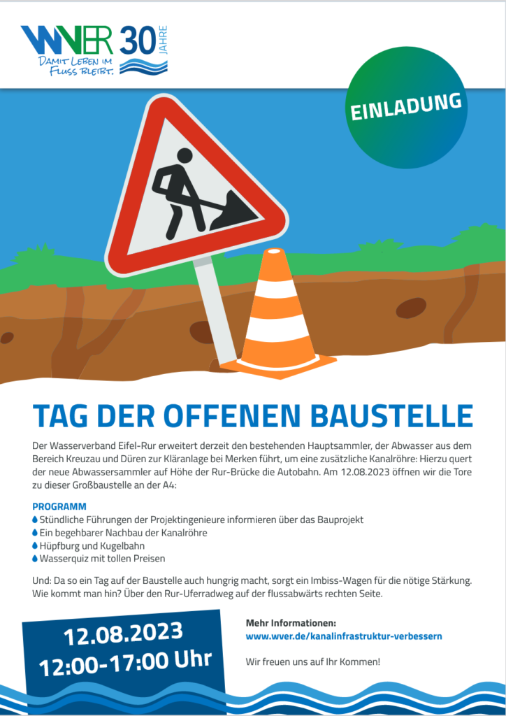 Am 12.08.2023 öffnen wir die Tore unserer Großbaustelle an der A4: Interessierte können sich an diesem Nachmittag selbst ein Bild machen und mit den zuständigen Ingenieuren in den direkten Austausch rund um die Kanalinfrastruktur der Zukunft gehen.